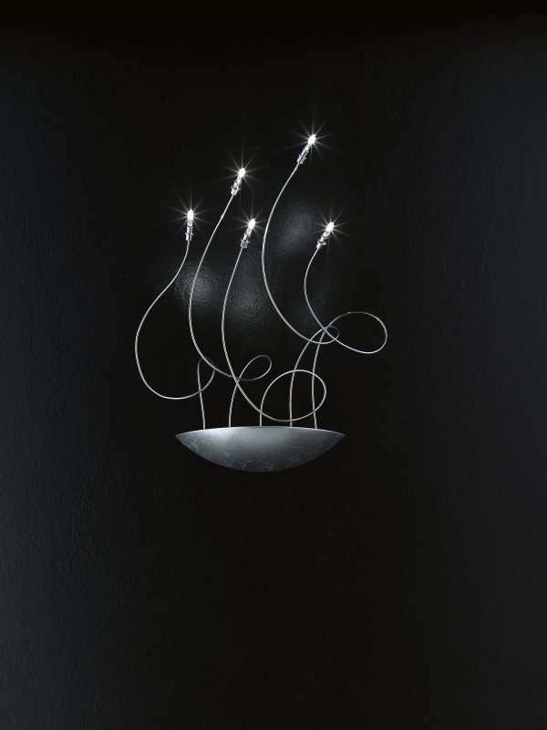 Applique a cinque bracci disponibile in foglia oro/nickel e foglia argento/cromo